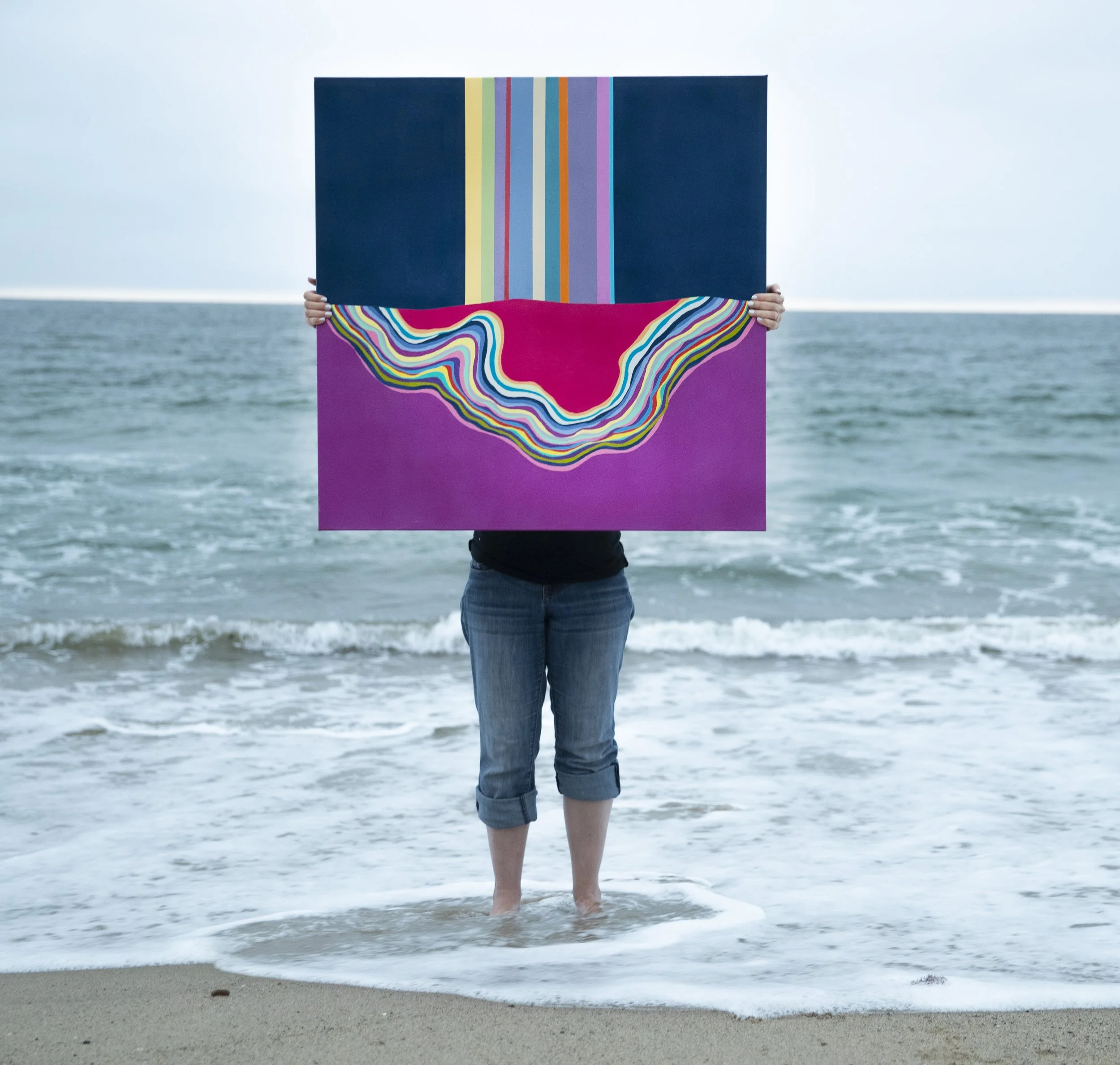 The piece is about the feminine and masculine balance that I feel. It’s an inaccurate piece because it’s rarely cut down the middle and often quite fluid. But it’s aesthetically pleasing, and I like it on my wall. Maybe you can buy it and like it on your wall next.